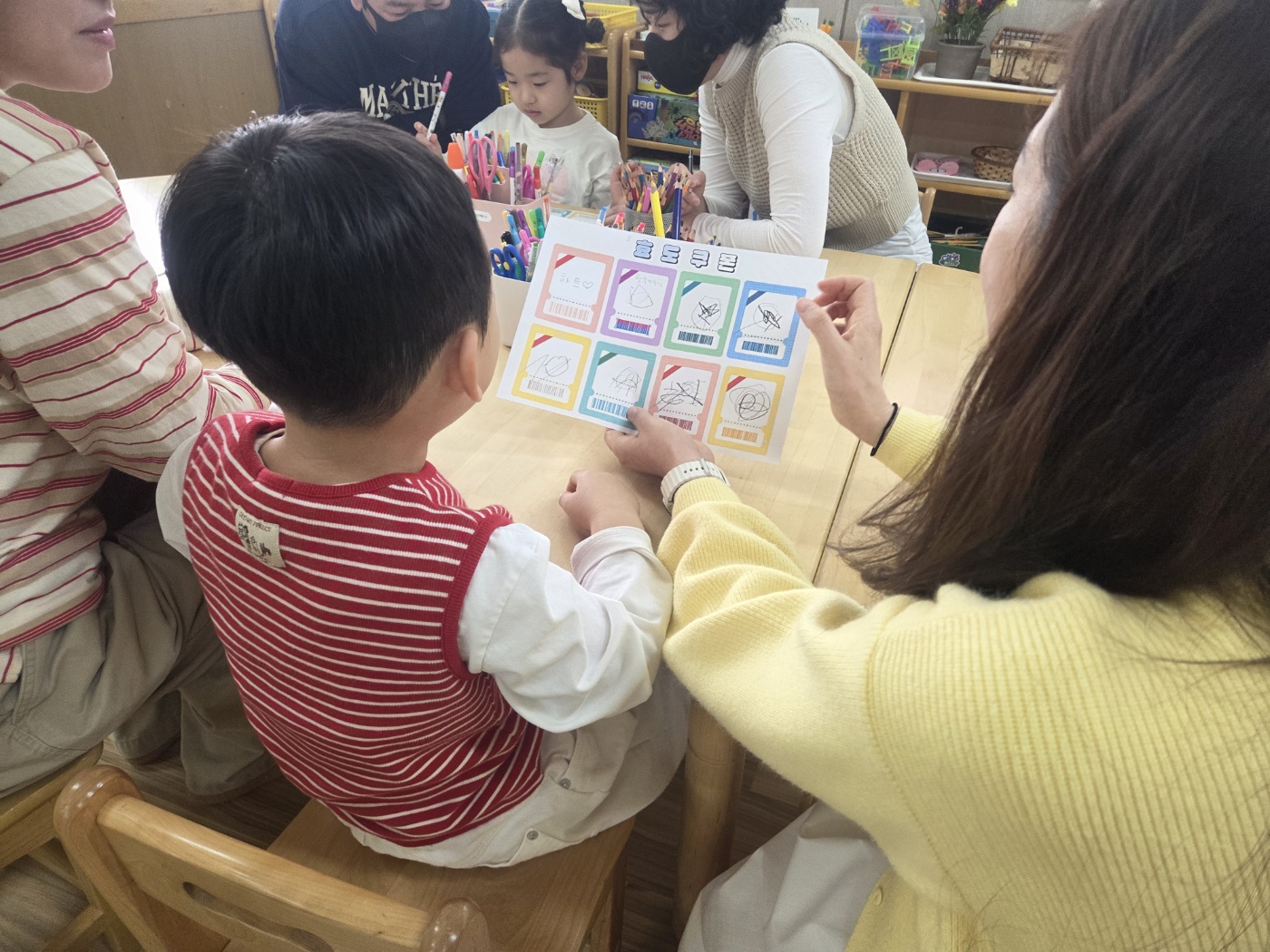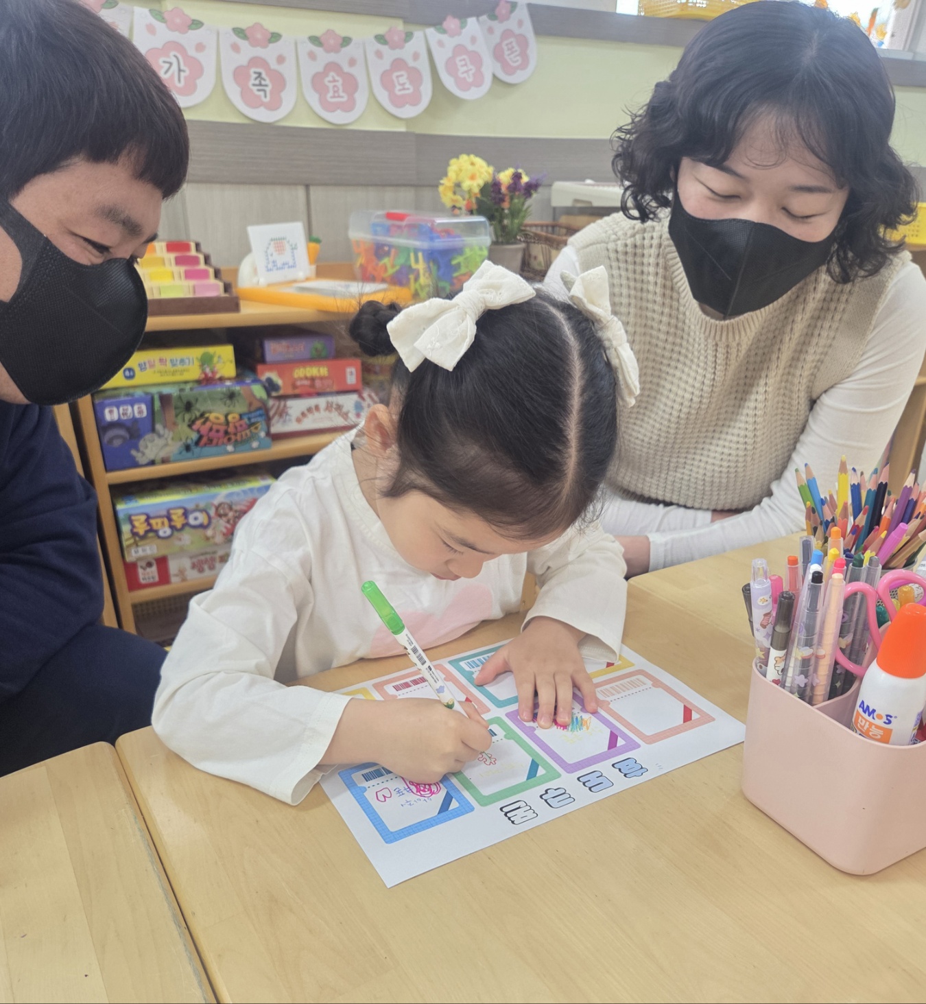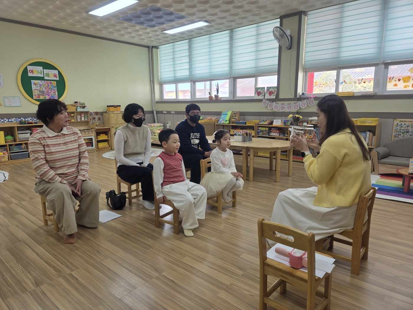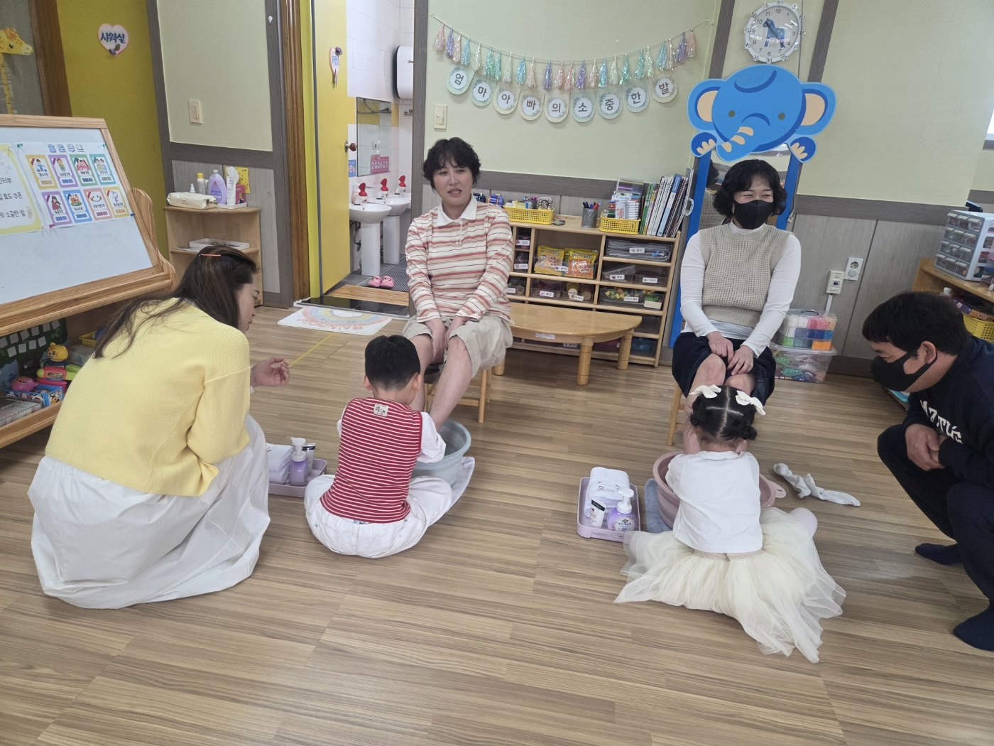 학부모 참여수업 시간에 유아들과 함께 ‘효’의 의미에 대해 알아보는 뜻깊은 시간을 가졌습니다. 작은 기자가 되어 부모님을 인터뷰하며 가족에게 받은 사랑과 고마움을 떠올려 보았습니다. “엄마·아빠는 어릴 때 어떤 아이였어요?”, “제가 언제 제일 기뻐요?”와 같은 질문을 통해 부모님의 어린 시절과 마음을 알아보며 서로를 더 이해하는 따뜻한 시간이 되었습니다. 또한 부모님께 사랑을 실천하기 위한 효도 쿠폰 만들기 활동과 사랑 표현 활동 부모님의 발을 정성스럽게 씻겨 드리며 감사의 마음을 행동으로 표현해 보았습니다. 서로 눈을 맞추고 웃으며 마음을 나누는 모습 속에서 교실 가득 따뜻한 감동이 전해졌습니다. 이번 활동을 통해 유아들은 효가 어려운 것이 아니라, 가족에게 받은 사랑을 다시 표현하는 것임을 자연스럽게 배우는 소중한 경험을 하였습니다. 앞으로도 일상 속에서 작은 사랑을 실천하며 따뜻한 마음이 자라나길 기대합니다.