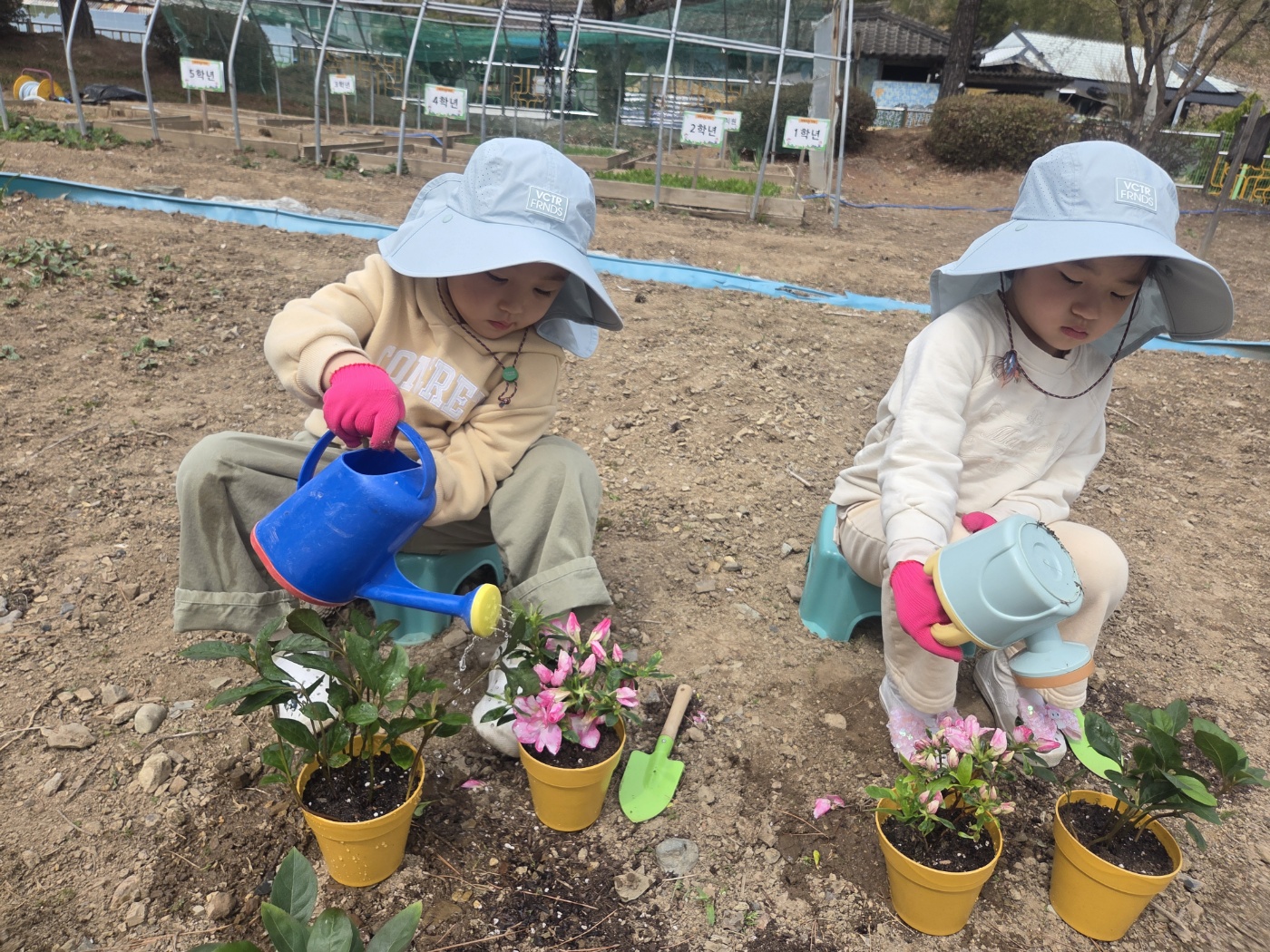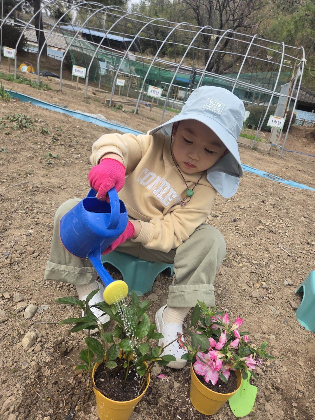 “잘 자라라~” 하며 흙을 토닥토닥 다져주고, 정성껏 물도 주며 소중히 돌보는 모습이 참 기특했어요.