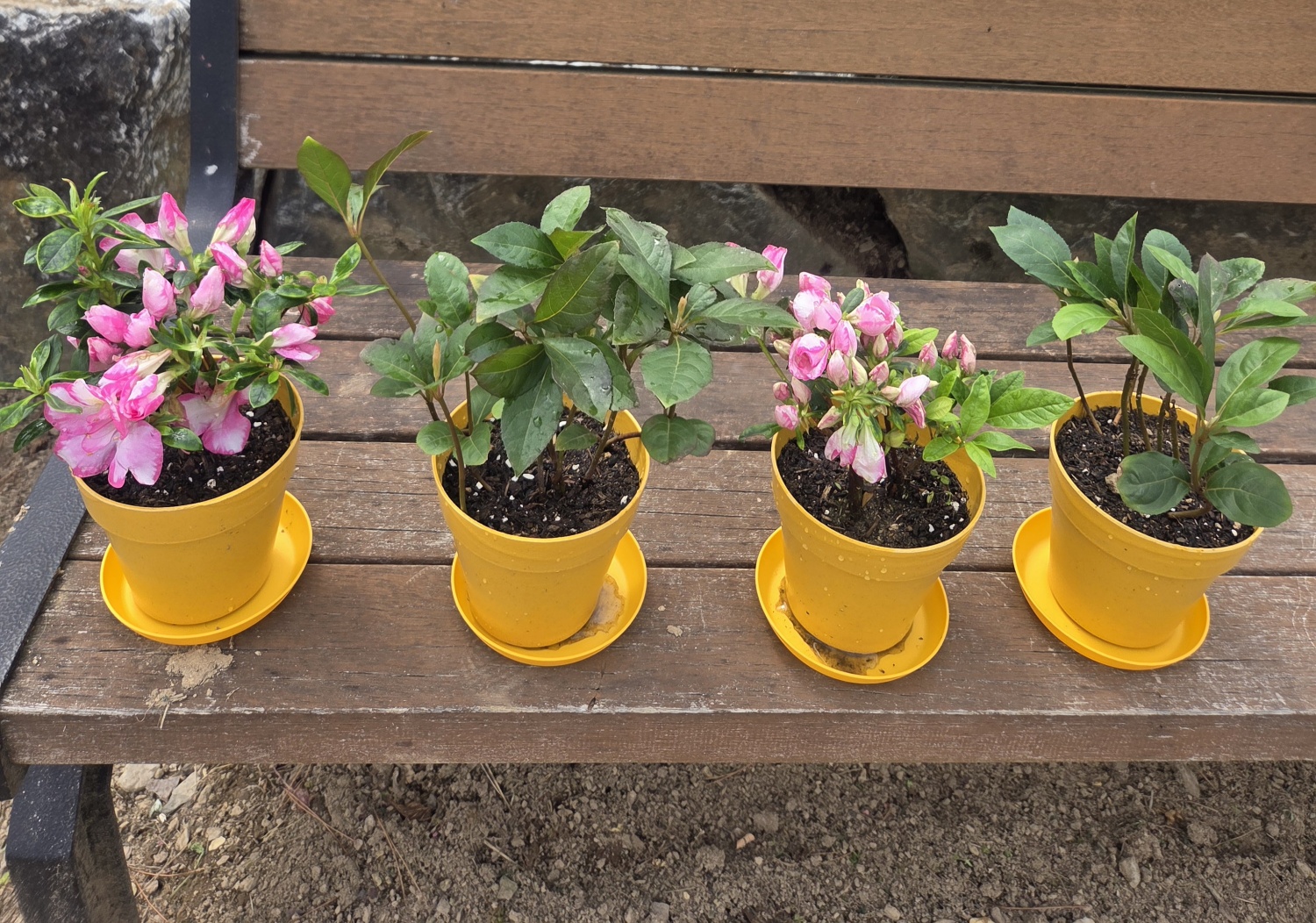 아젤리아와 천량금을 화분에 쏙! 심고, 꽃과 잎을 자세히 관찰했어요.
