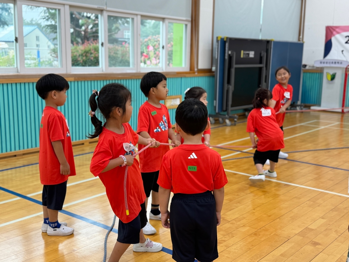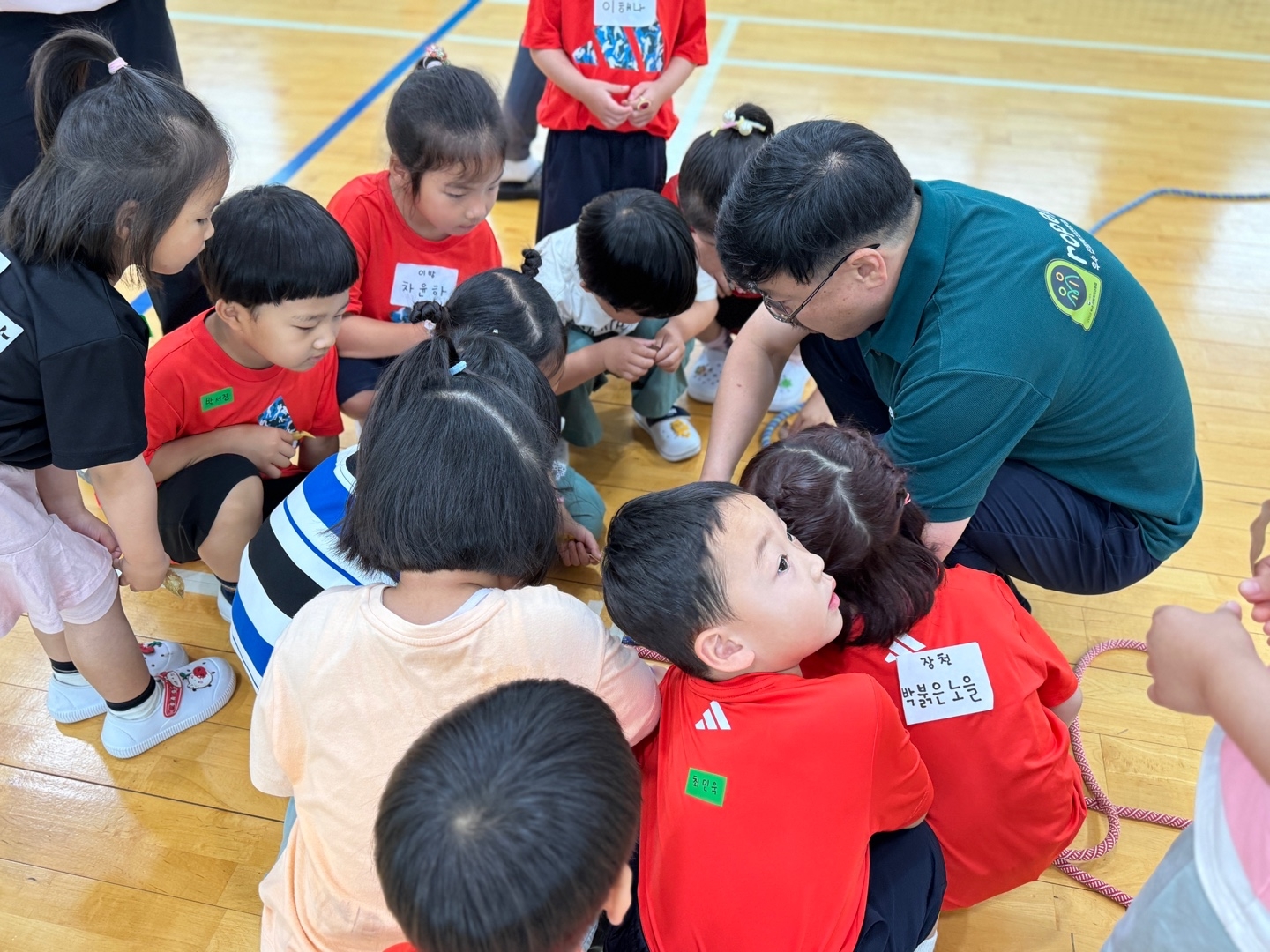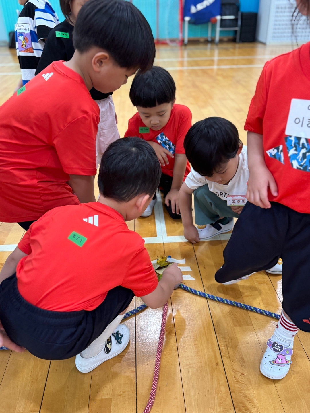 아이들의 상상력이 자라나는 특별한 하루 ???? 굵은 밧줄로 큼직한 나뭇잎을 만들고, 얇은 밧줄로 정성스레 잎맥을 표현해 보았어요. 잎맥을 따라 '물방울'이 되어 이동하는 아이들의 모습은 그야말로 자연 속 생명 그 자체! 그리고 이어진 놀이, 수건나뭇잎 위의 물방울을 톡톡 튕기며 소근육 발달은 물론 즐거움까지 톡톡! 밧줄 썰매를 타고 시원하게 이동하며 웃음꽃이 활짝 피었습니다. 밧줄 하나로 자연을 그리고, 아이들의 몸과 마음을 건강하게 움직인 의미 있는 놀이 시간이었습니다. 우리 아이들의 순수한 호기심과 창의력이 자라나는 이 순간을 함께 나눕니다.