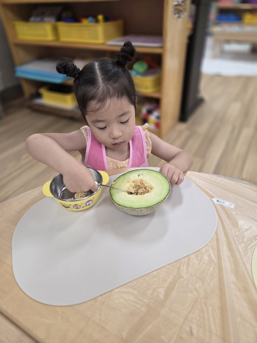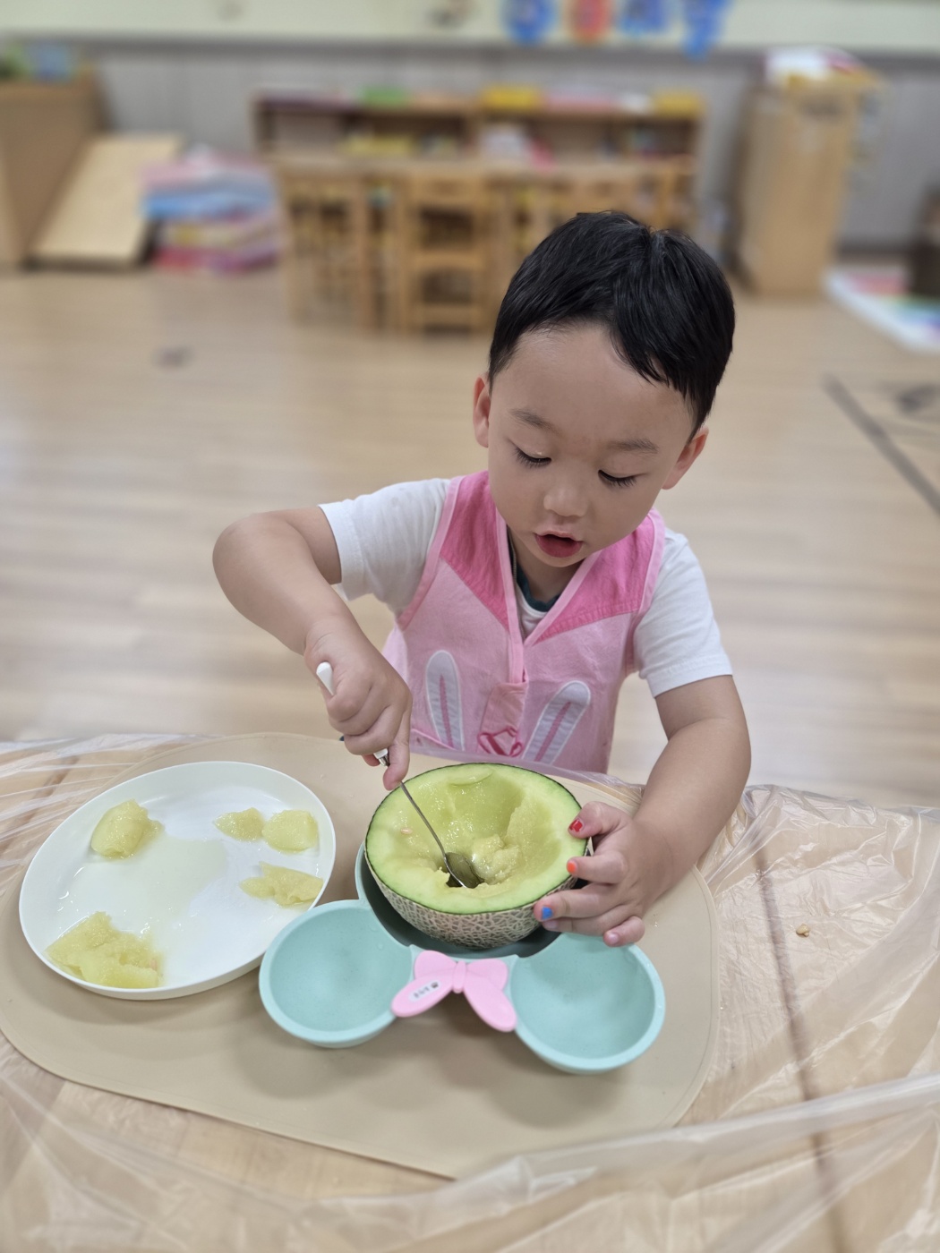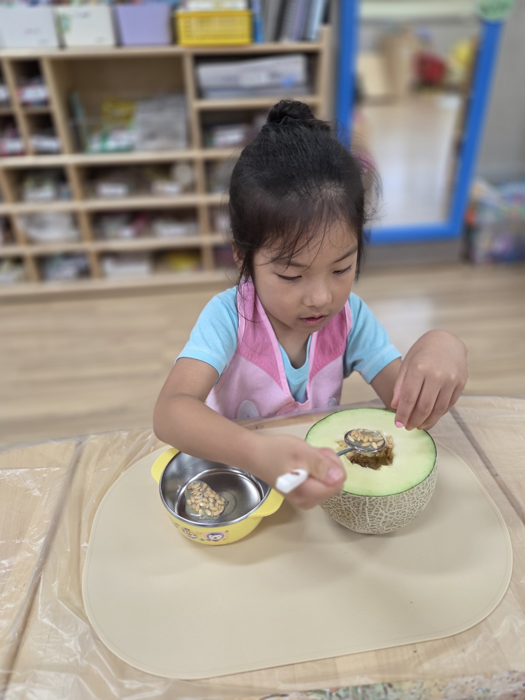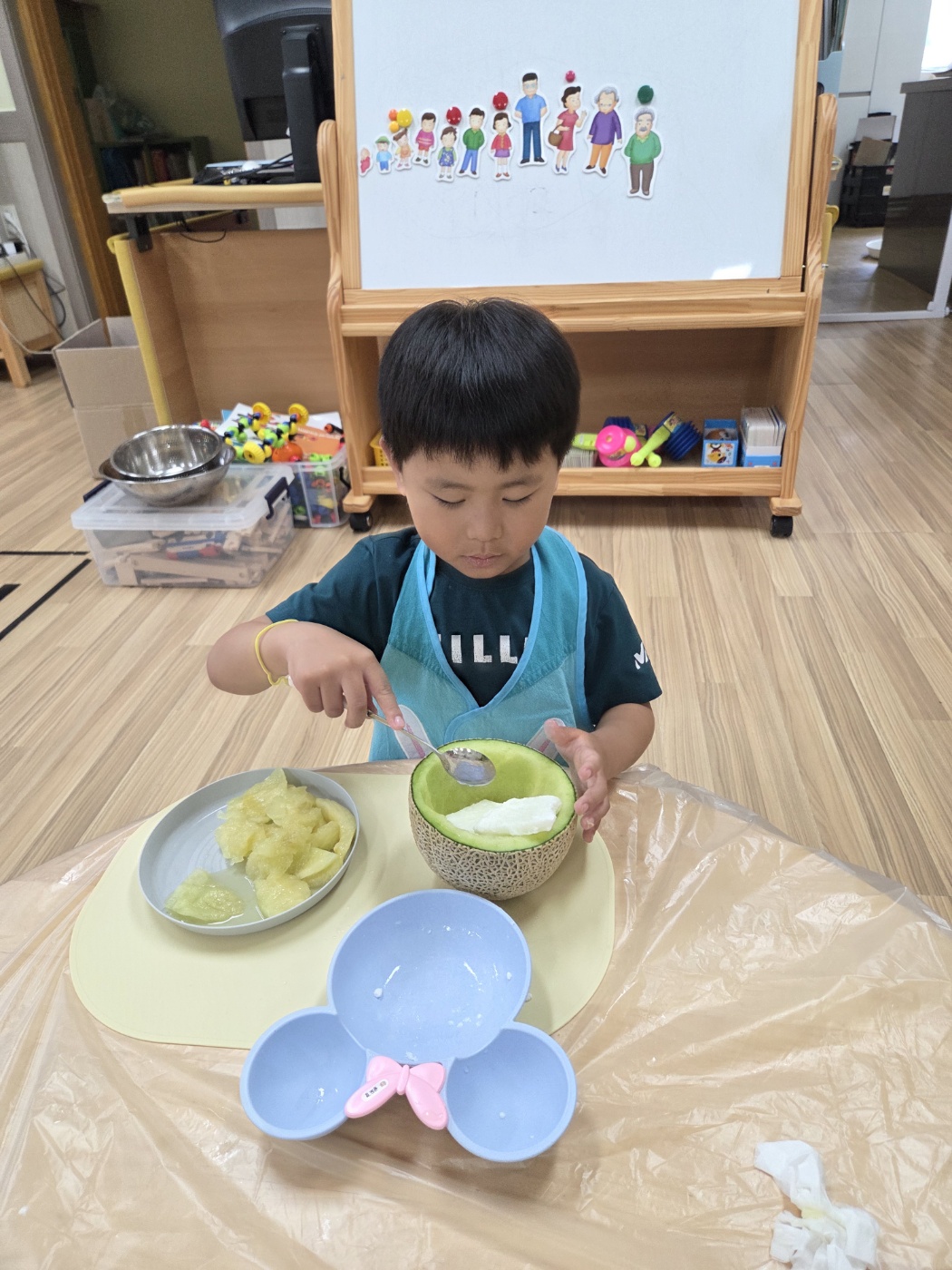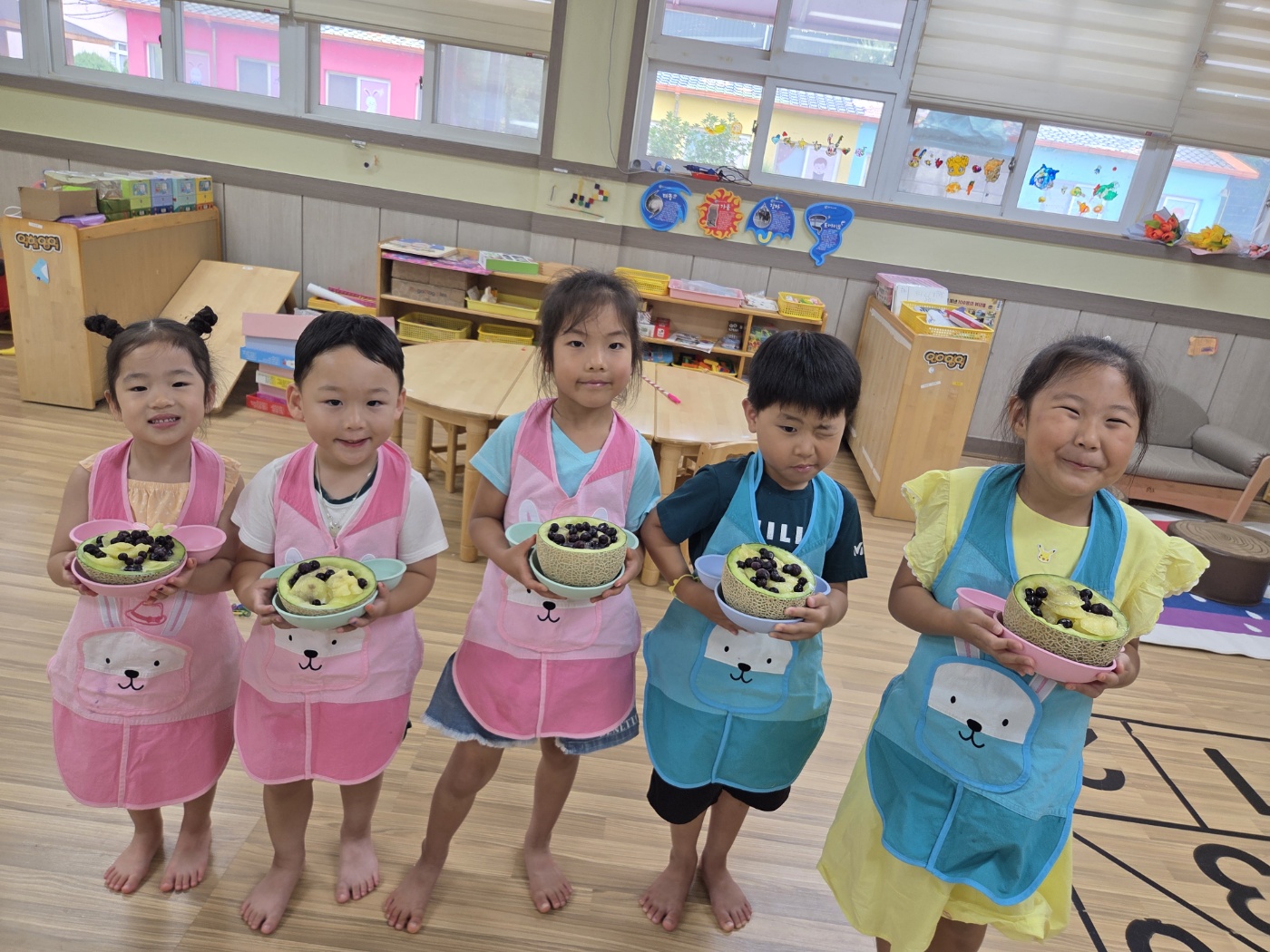 방과후과정 시간에는 여름철 더위를 날려줄 맛있는 요리활동을 했어요!싱그러운 초록빛 멜론을 숟가락으로 조심조심 떠서,사각사각 얼린 우유와 상큼한 블루베리를 함께 넣으니세상에서 하나뿐인 우리만의 멜론 화채가 완성!