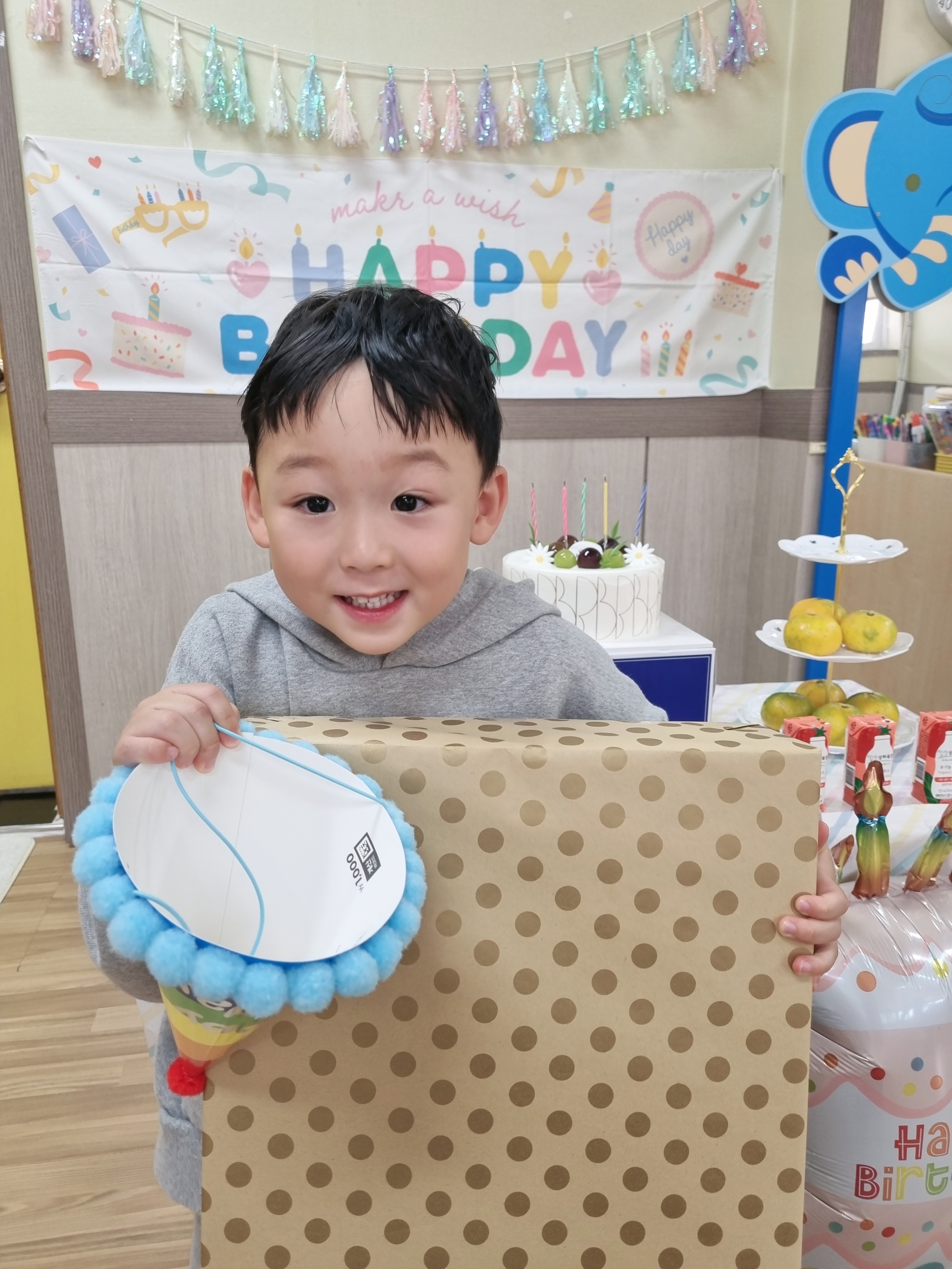 오늘은 우리 반의 귀여운 주인공, 민욱이의 생일이었어요친구들과 함께 생일 축하 노래를 부르며 환하게 웃던 민욱이의 얼굴엔 행복이 가득했답니다.반짝이는 초를 후~ 불고, 누나들이 정성껏 써준 손편지와 가지고 싶었던 레고 선물까지! 사랑과 웃음이 가득한 하루 속에서 민욱이는 더욱 특별한 주인공이 되었어요앞으로도 매일매일 즐겁고 빛나는 날들이 이어지길, 모두가 함께 축하했답니다