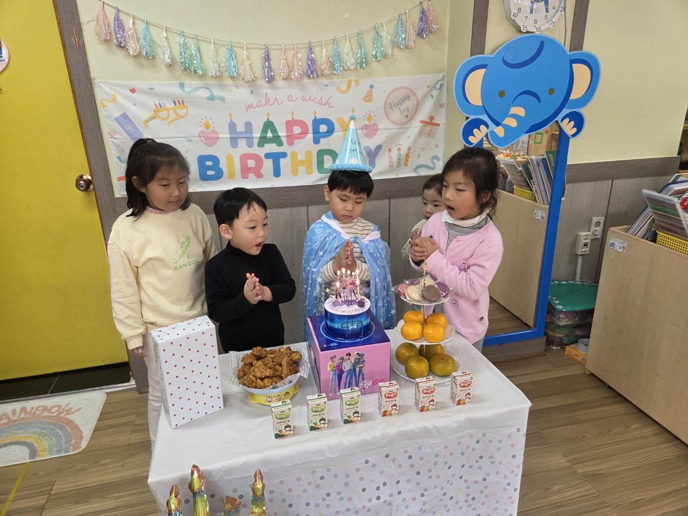 오늘은 반 친구들과 함께 도경이의 특별한 하루를 기념했어요. 맑고 따뜻한 가을 햇살처럼, 이렇게 좋은 계절에 태어난 도경이가 얼마나 소중한 아이인지 다시 한 번 느낄 수 있는 시간이었답니다. 생일 노래를 부르며 모두가 환하게 웃어주었고, 도경이도 친구들의 축하를 받으며 귀여운 미소를 보여주었어요. 케이크의 촛불을 조심스레 불어 끄는 모습이 참 사랑스럽고 듬직했답니다. 앞으로도 도경이가 지금처럼 건강하게 자라며, 매일매일 행복이 가득한 하루를 보내기를 진심으로 바랍니다. 도경이의 멋진 성장을 늘 응원하고 있을게요!